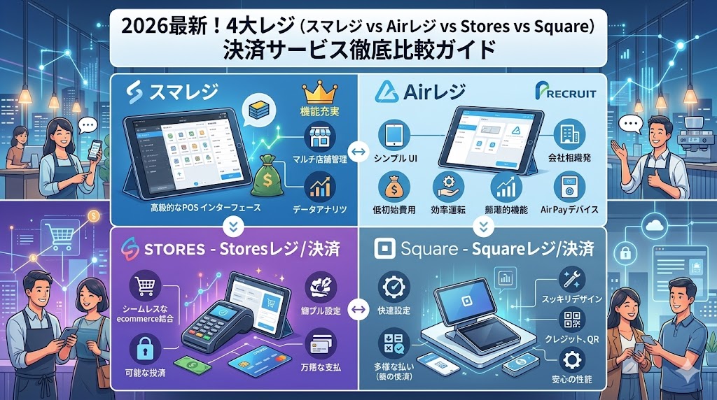 | 比較項目 | スマレジ | Airペイ | STORES | Square |